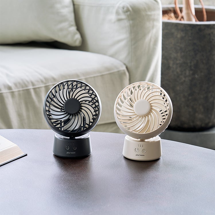 plus moreでは2025年夏の新作、「ラウンドミニデスクファン 首振り機能付」を2025年3月25日(火)より販売開始いたします。