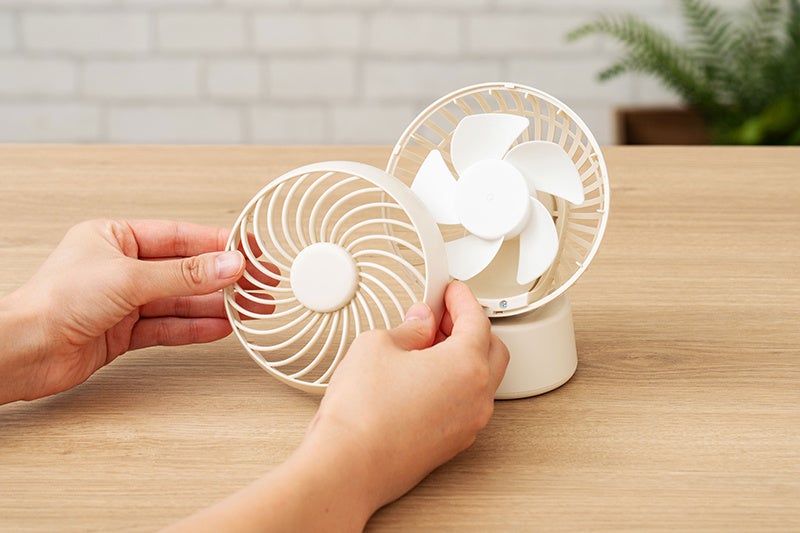 丸いフォルムとコンパクトさがかわいい充電式ミニデスクファン