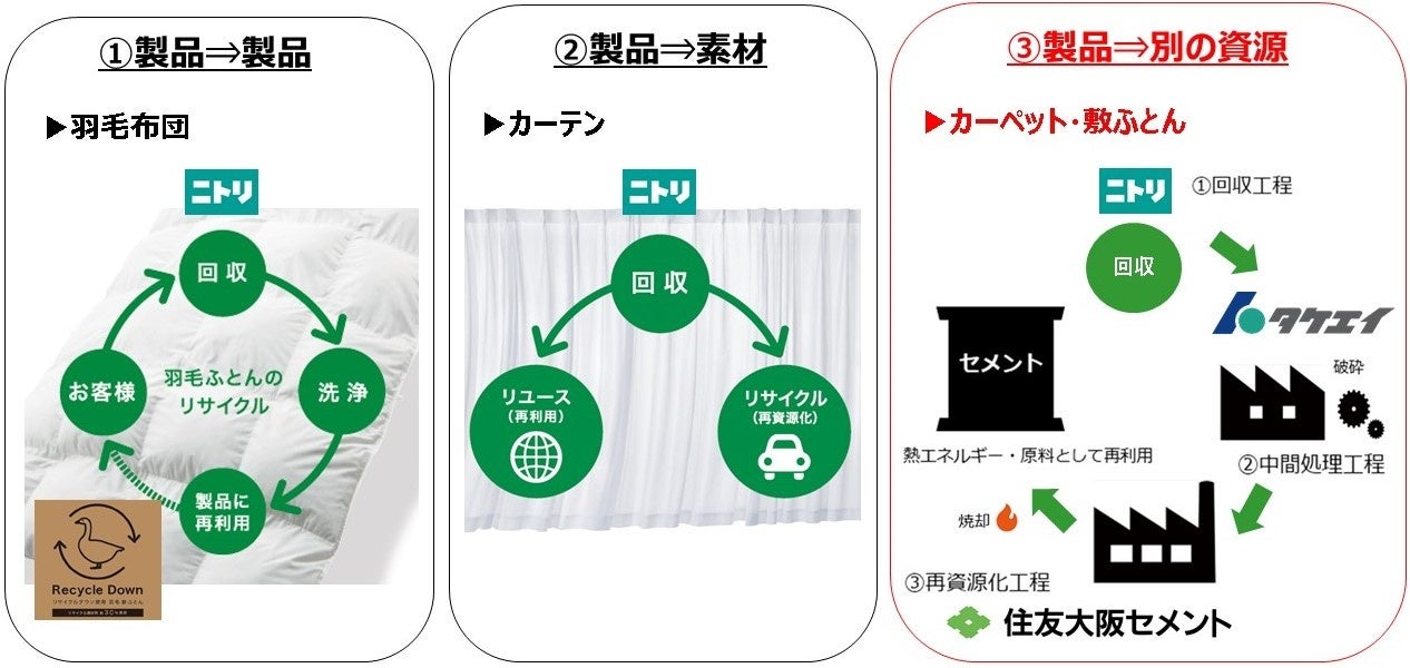 ニトリグループは、現在3つのリサイクルの仕組みを持っています。