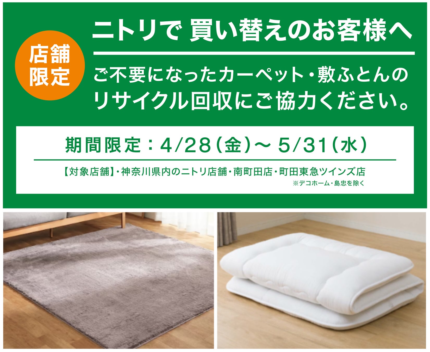 【ニトリ】対象店舗拡大!カーペット・敷ふとんのリサイクル回収を期間・地域限定で実施。