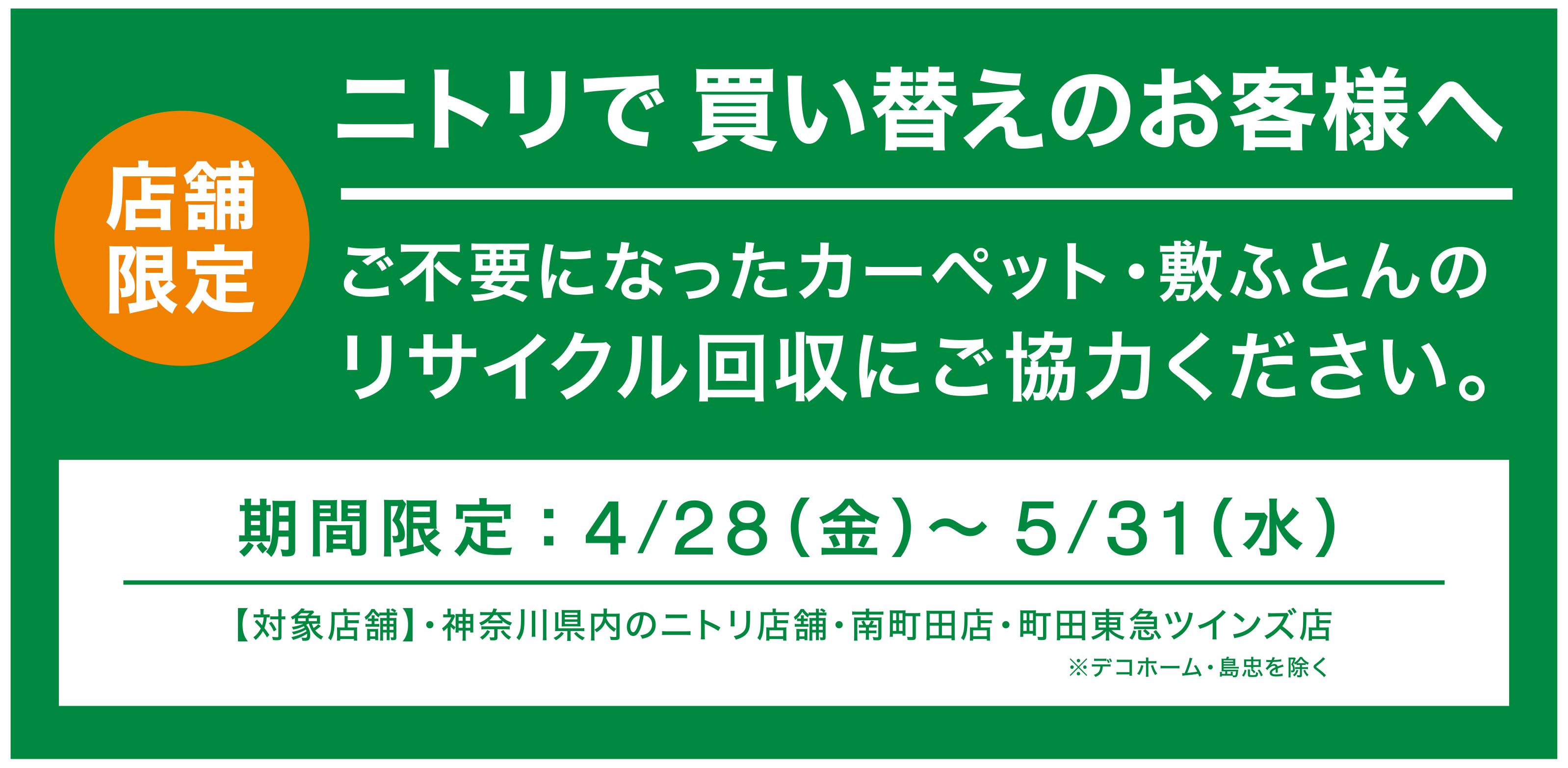 ※回収実施店舗以外のニトリやニトリネットでのご購⼊分も、対象に含まれます。