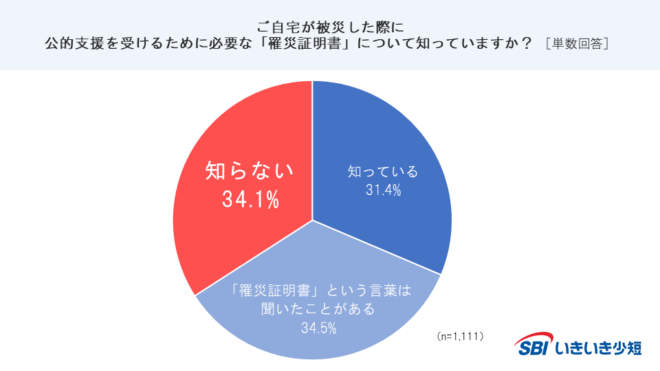 ・罹災証明書を「知らない」と回答した方は34.1%となった。