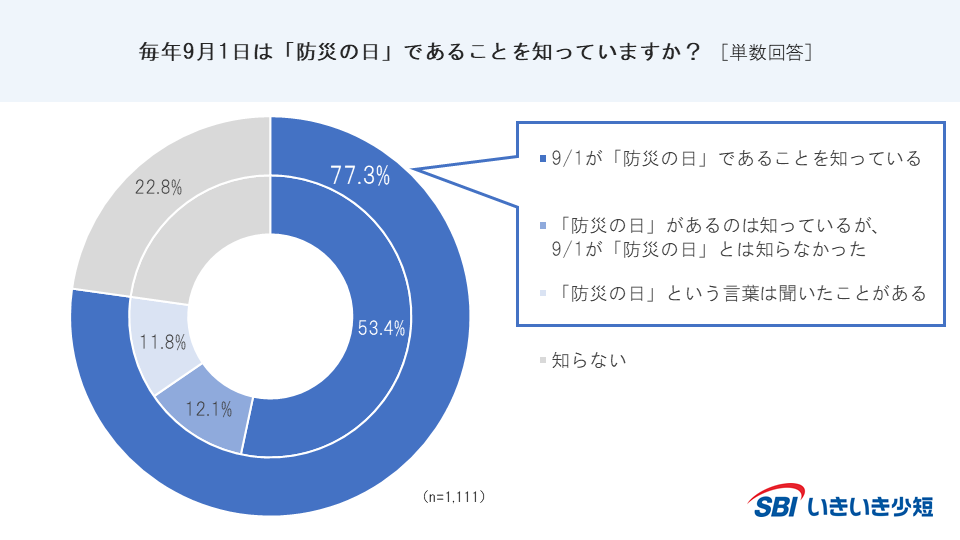 【SBIいきいき少短】“地震・防災”に関するアンケート調査(第13回)を実施~9月1日は「防災の日」~