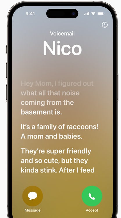 留守番電話を誰かが残すと、リアルタイムでメッセージが書き起こされる機能も追加されます。留守番電話として残るはずの内容がリアルタイムで確認できるため、重要な要件であれば、すぐにわかるようになります。