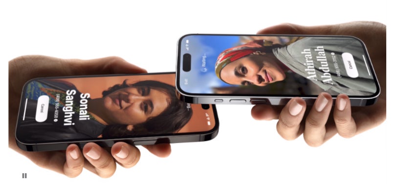 AirDropでは「NameDrop」と呼ばれる新機能が追加されます。NameDropはiPhone同士を近づけるだけで連絡先を共有できる機能で、連絡先意外にも同じジェスチャーを使ってコンテンツを共有することが可能です。