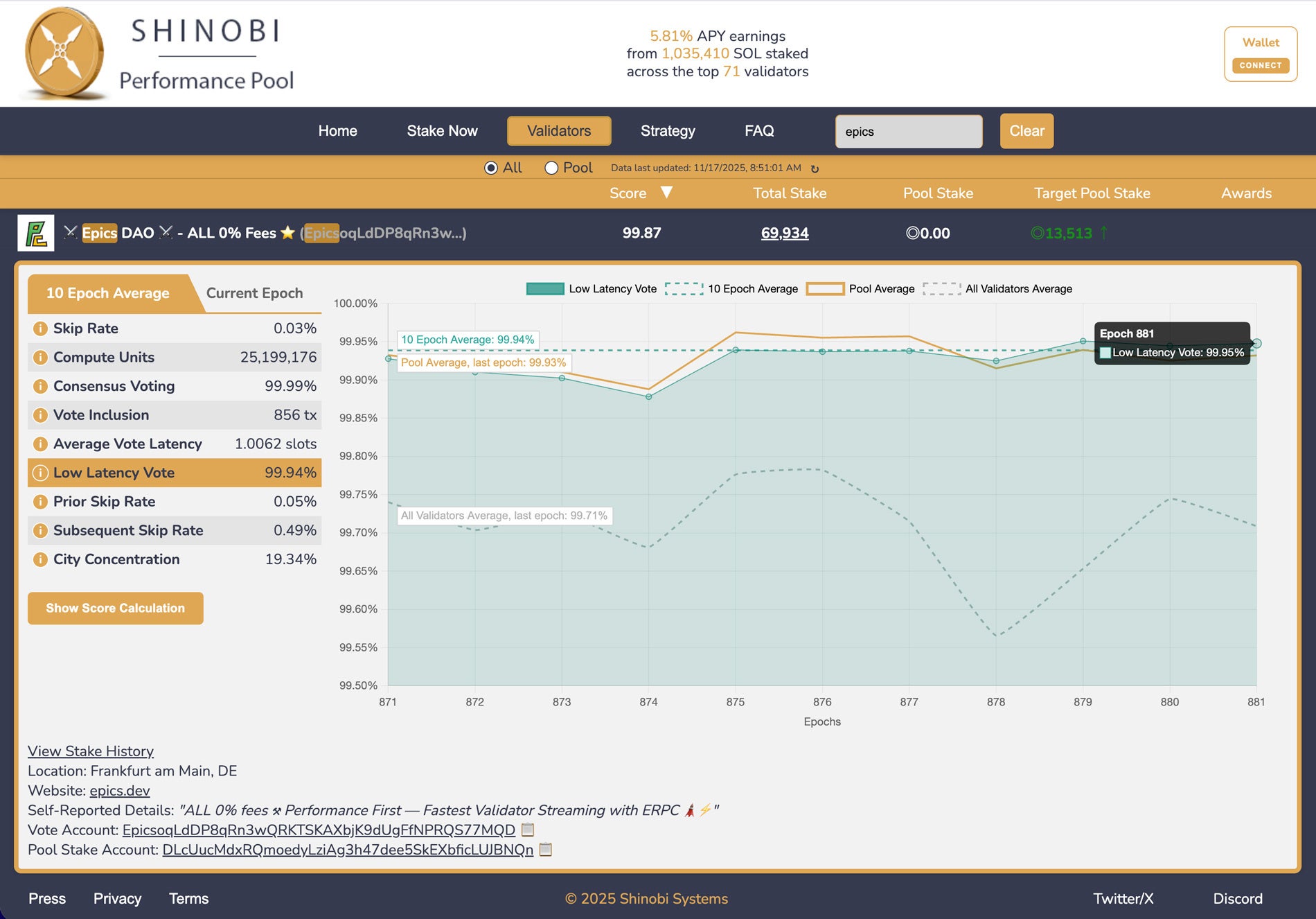 これらのアップデートは、ERPC および Validators DAO が運用する Epics DAO バリデータにおいても、具体的なスコア改善として確認されています。