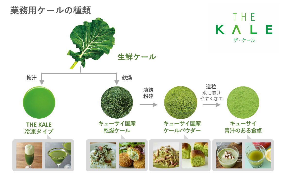 THE KALEシリーズから外食企業向け「乾燥ケール」「ケールパウダー」登場!フード、スイーツなどに、簡単オペレーションでスーパーフード「ケール」を!