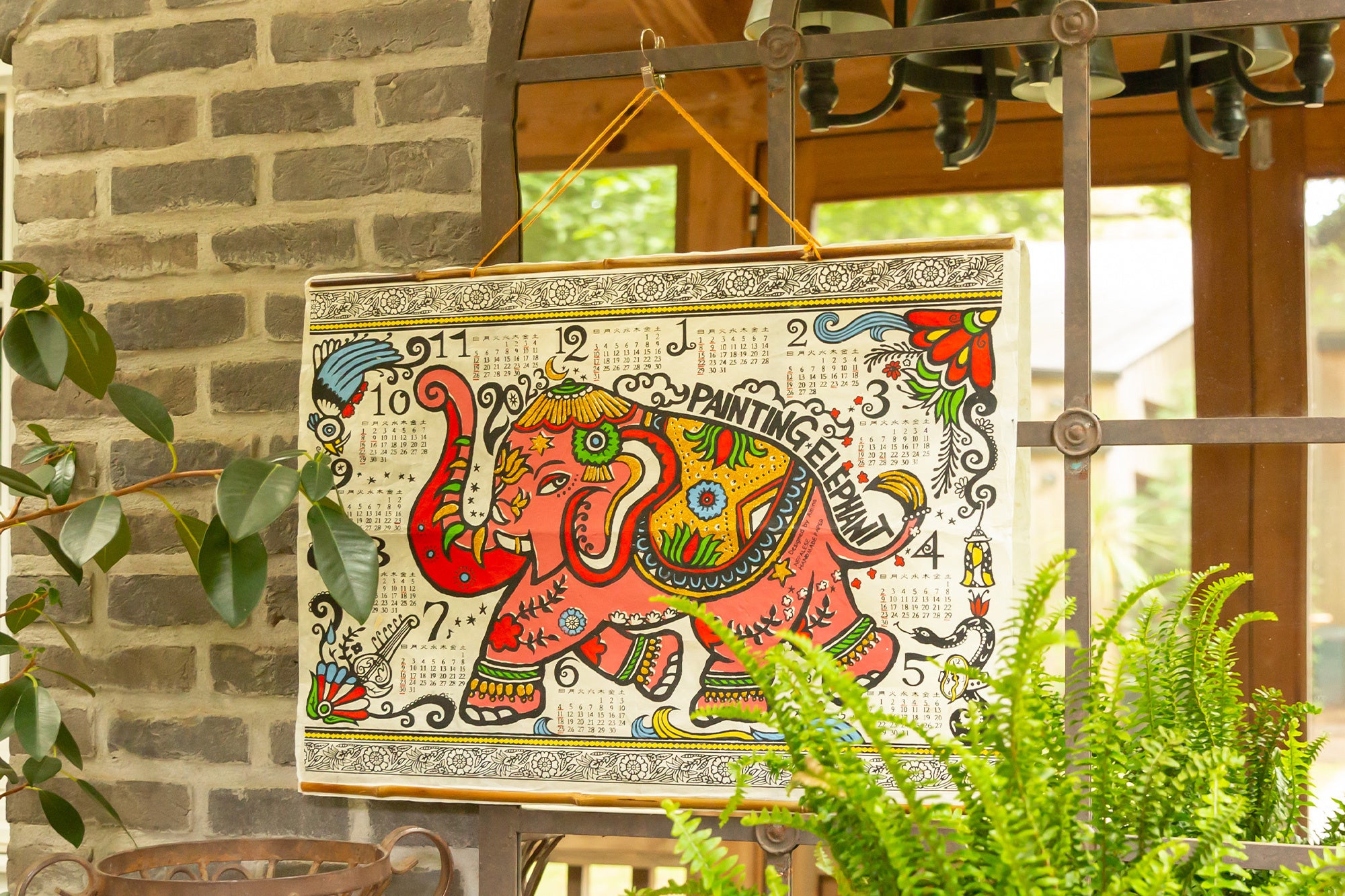 お部屋で抜群の存在感を放つ、ネパールハンドメイドの手漉き紙カレンダーです。タイのピンクガネーシャをイメージした細やかで鮮やかな色彩と、キラキラグリッターペイントが楽しめます。
