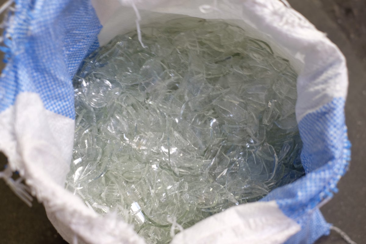 夫婦岩が有名な三重県伊勢市二見町、海の近くに工房はあり、海風を感じながら制作活動を行っています。分業が多いガラスづくりの世界で、中村氏は原料となる空き瓶の調達、手作業での洗浄と乾燥を行い、細かく砕く。いくつもの工程を、自身で手掛けます。
