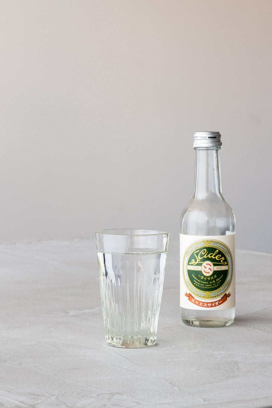 ガラスはリサイクル、リユース、リターナブルが盛んな業界です。環境負荷を減らしたうえで、生活を豊かにする作品をお届けしたいと考え、本企画展のガラス原料である地サイダーのリサイクルを実施します。期間中に店舗で中村氏の作品4点ご購入につき、「復刻エスサイダー」1本をプレゼントします。