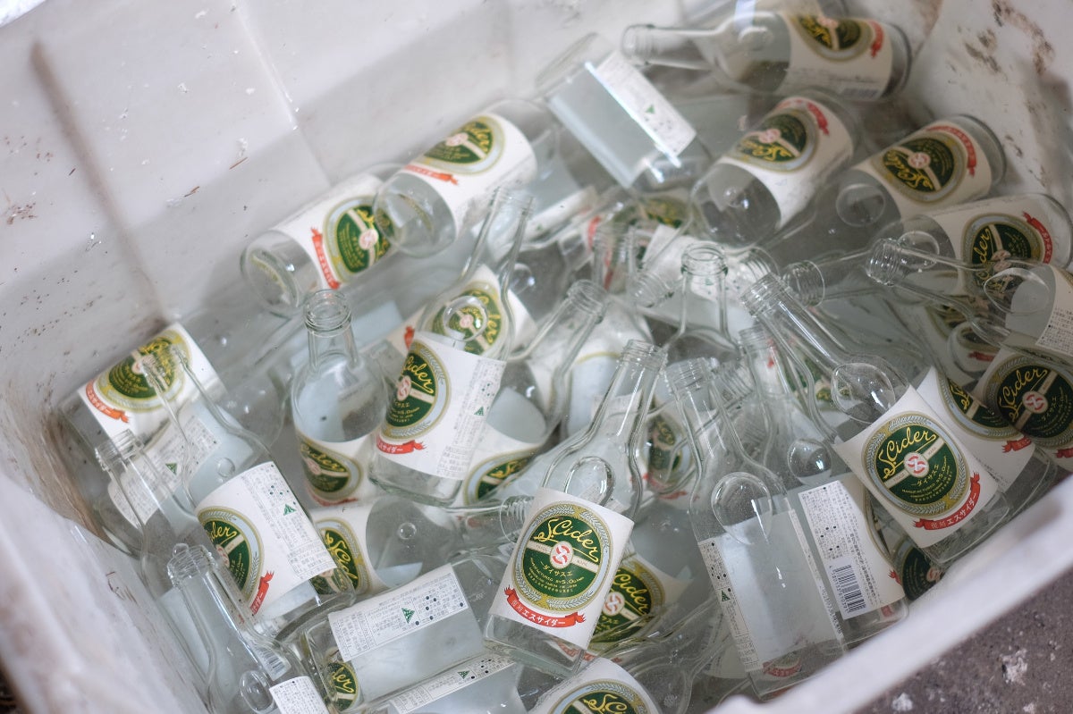 購入者プレゼントのサイダー瓶を回収し、次の作品づくりへ