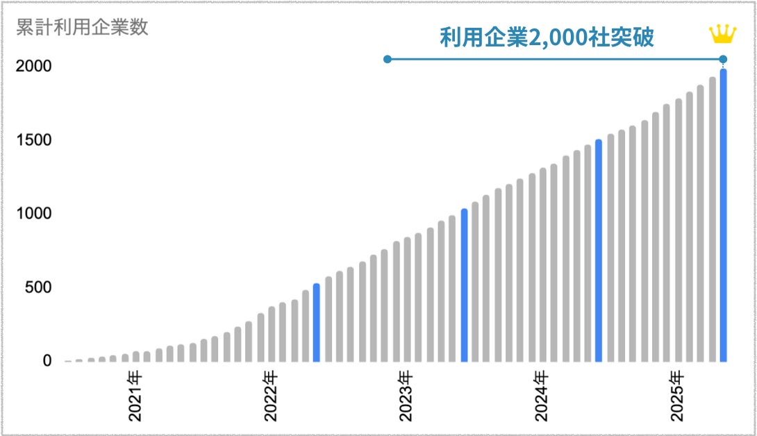 2020年6月のサービス開始以来、着実に利用企業が増加してきたPIXTAオンデマンド。2024年10月に利用企業数1,600社を突破してから約半年で2,000社を突破するに至りました。