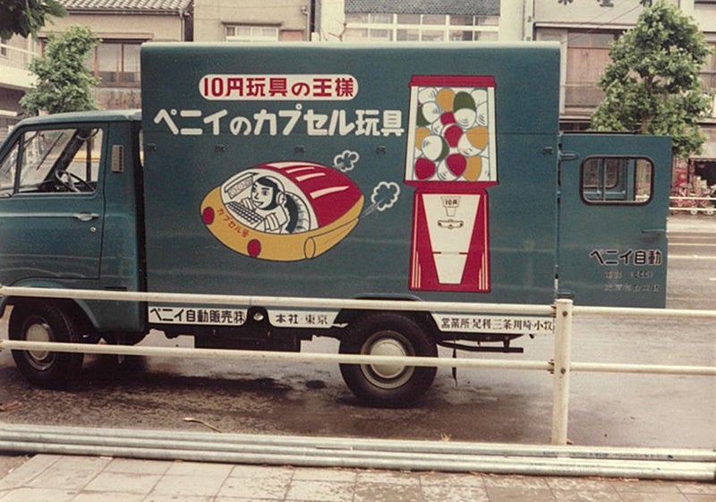 日本に輸入され、透明なカプセルの詰まったマシンがおもちゃ屋や駄菓子屋、文房具屋の店先に置かれました。