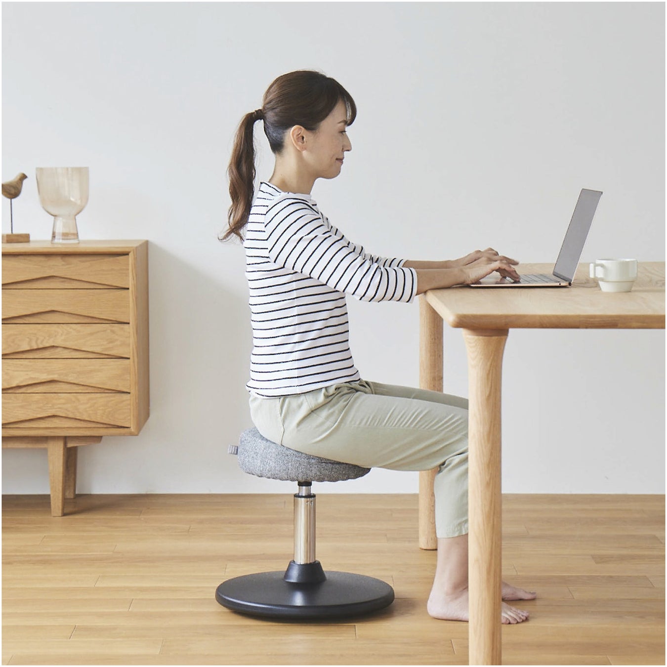 「ル・プリエスクワットバルン」は土台底面にラウンド形状を採用することで、座面を前後左右に360度ゆらゆらと揺りうごかすことができます。不安定な座位で身体がバランスを取ろうとすることで、常に体幹の筋肉を使っている状態を作り出します。