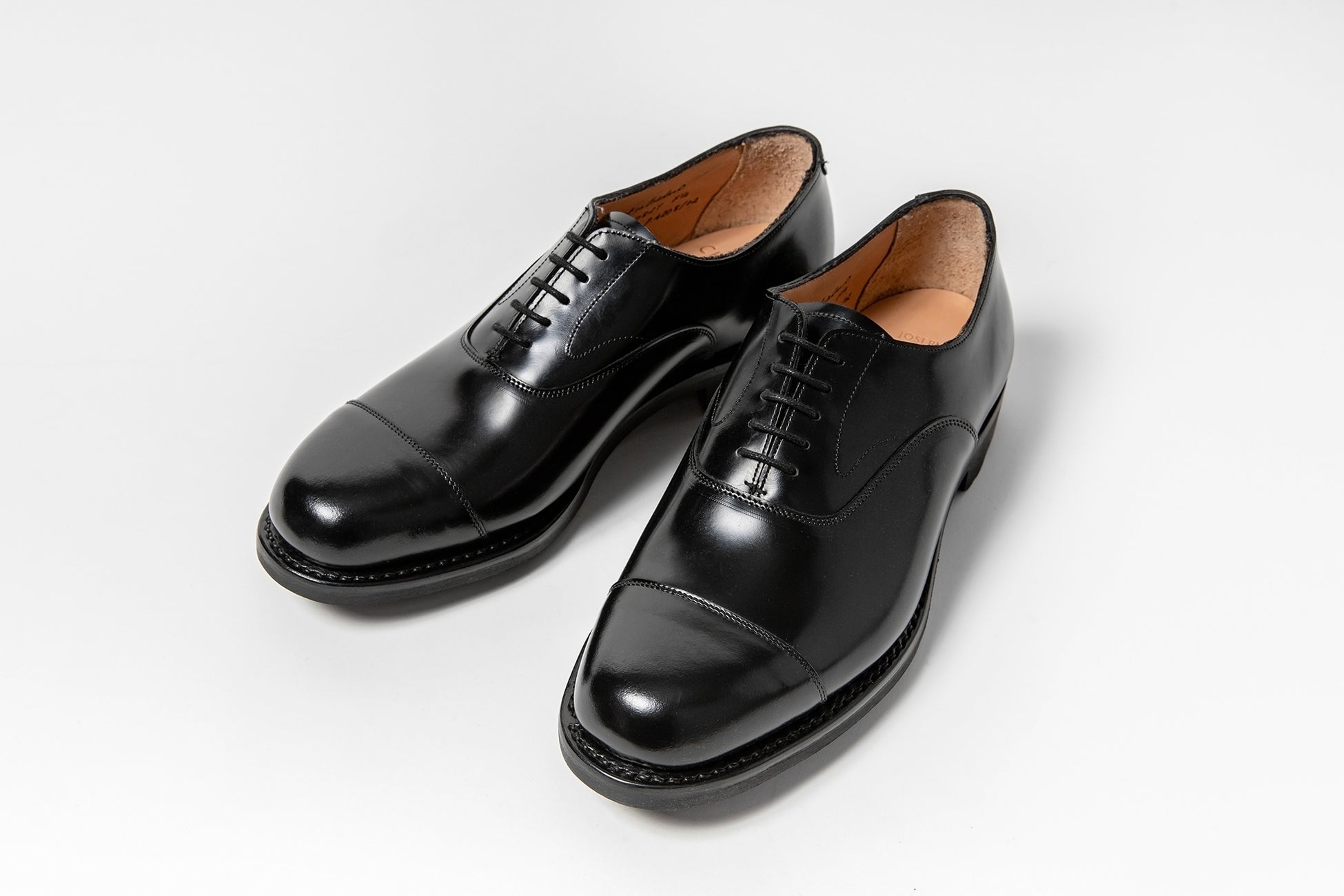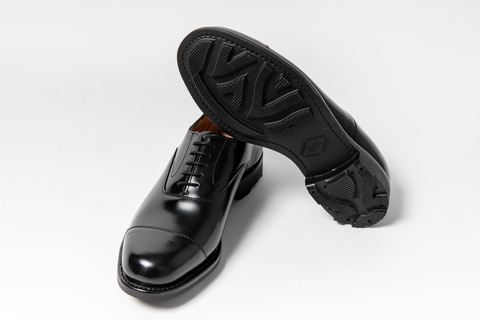 林田さんの思い入れがあるサービスシューズのデザインをベースに、ドレッシーな内羽根式や曲線を描くサイドステッチ、お手入れしやすく雨にも強いとされる樹脂加工レザーを取り入れています。ソールにはリッジウェイソール(ラバー素材)を採用しているため、雨や雪などが多い札幌でもグリップ力を保ってくれます。ミリタリーらしい実用的なデザインと、ドレッシーさを融合した逸品です。