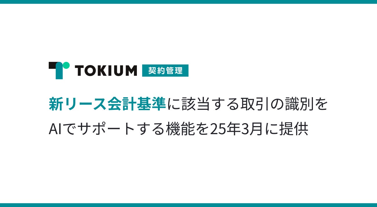 TOKIUM契約管理、新リース会計基準に該当する取引の識別をAIでサポートする機能を25年3月に提供