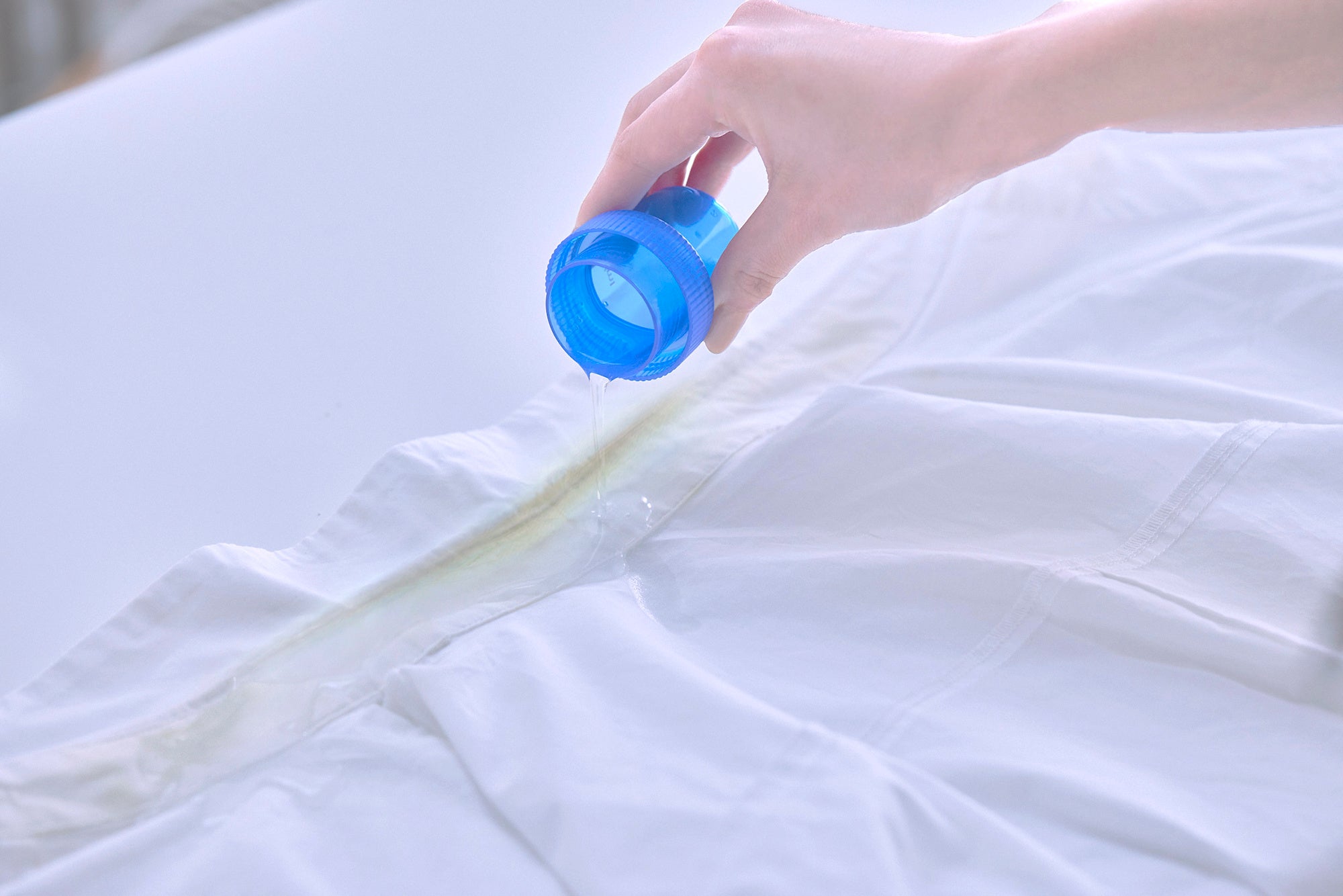 衣類の皮脂汚れや汗染み、食べこぼしにはパワーリキッドを直接かけてかんたんシミ抜き