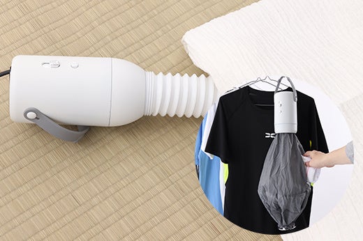 衣類アタッチメントに変更するだけで、衣類乾燥機にもなります。