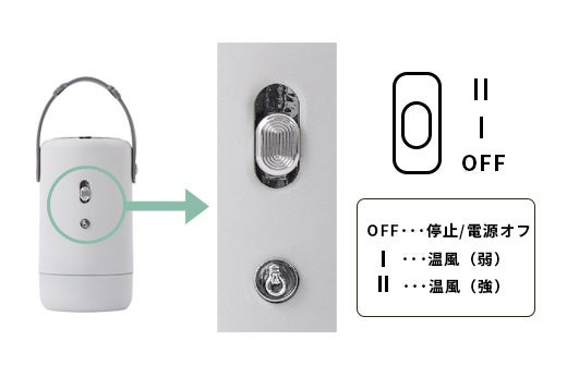 使い方はとても簡単です。ON/OFFスライドスイッチをスライドするだけ。