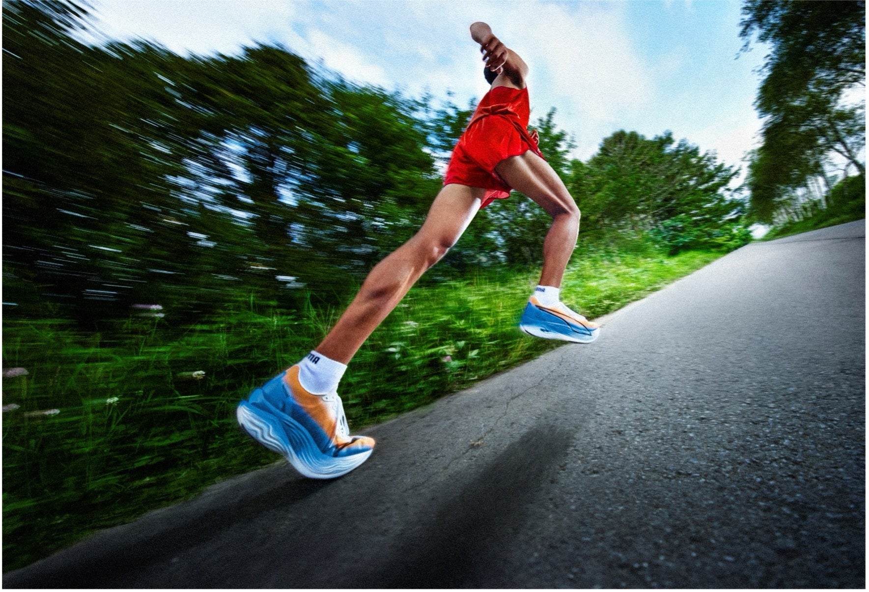 「VELOCITY NITRO™ 4」は、軽量性・反発性・フィット感という3 つの特長を軸に、初心者から上級者まで幅広いランナーの走りをサポートするプーマの定番モデルです。フルレングスのNITROFOAM™を採用し、従来比で約85%のエネルギーリターンを実現。さらに、前モデルより約14g の軽量化にも成功し、シューズ(27.0cm)全体の重さはわずか約250g に抑えられています。これにより、より軽やかで弾むような走り心地を可能にしました。