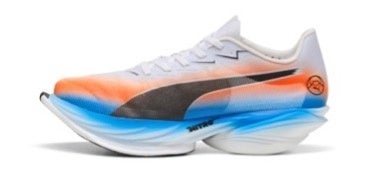 エリートランナーとの共同開発とフィールドテストを経て誕生し、前作FAST-R NITRO™ ELITE 2より約95グラムの軽量化により約170g(27.0cm)を実現しました。二層構造のミッドソールには新開発した「NITROFOAM™ ELITE(ニトロフォーム エリート)」ミッドソールを採用し、さらなるクッション性と反発力を発揮します。また、前足部からつま先を突き抜ける独自形状のカーボンプレート「PWRPLATE(パワープレート)」が、圧倒的な推進力と高いエネルギー効率をサポートします。アッパーには軽量かつ高機能な「ULTRAWEAVE(ウルトラウィーブ)」を採用し、通気性・快適性・サポート性を兼ね備えています。アウトソールにはプーマ独自の「PUMAGRIP(プーマグリップ)」を採用し、あらゆる路面で高いグリップ力を発揮します。