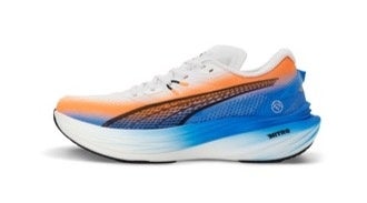 前作より4mm厚くなったミッドソールは、プーマの革新的なNITROFOAM TM ELITE技術を搭載し、優れたエネルギーリターンを実現します。アッパーには、プーマ独自の軽量ウーブン素材ULTRAWEAVEのモノメッシュを使用、通気性を高め、PWRTAPEでストレスのかかる部分を補強しています。重量わずか194g (27.0cm)の史上最軽量クラスのシューズで、圧倒的なスピードによりレース本番で の自己ベスト更新を後押しします。