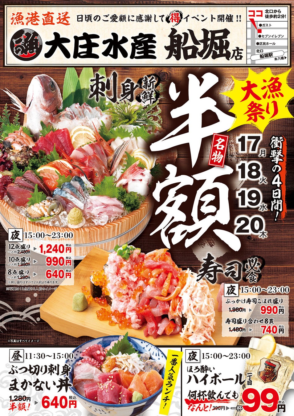 【刺身、寿司、海鮮丼が半額!ハイボールは激安の99円】船堀の『大庄水産』で衝撃の4日間!11/17(月)から11/20(木)まで限定