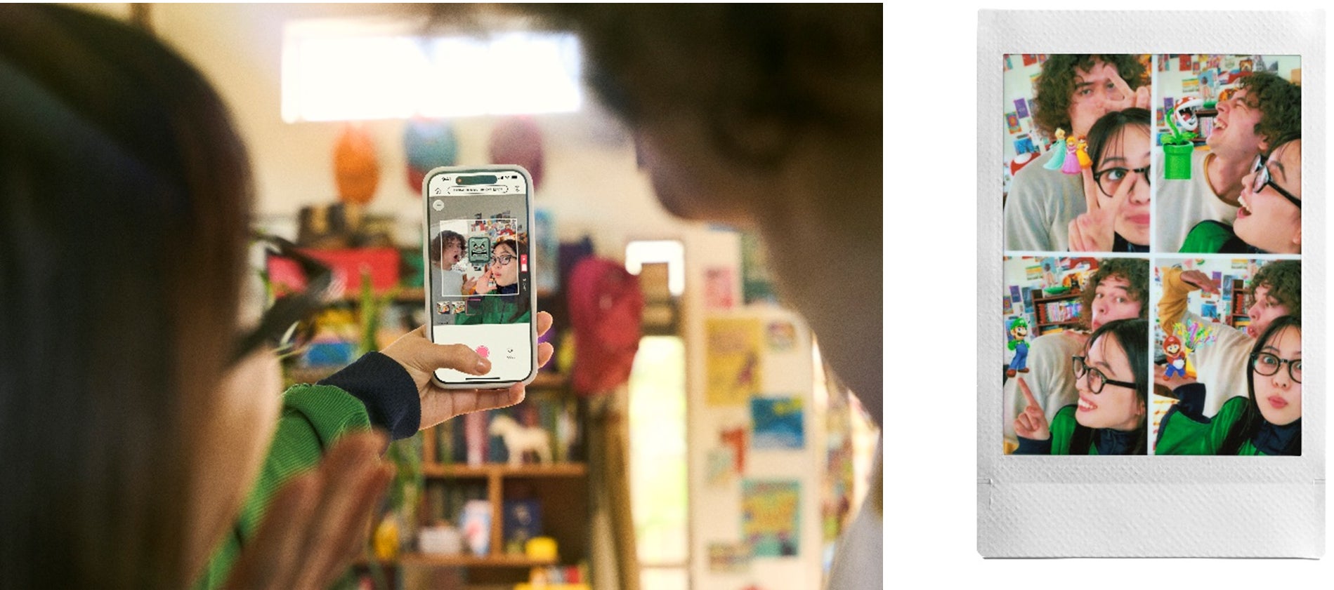 ・作成したコラージュ画像をスマホプリンター「mini Link」シリーズで出力すると、連続して撮影した画像を順番に表示し、動きのある映像として再生する動画「instax Animation™」を楽しめます。