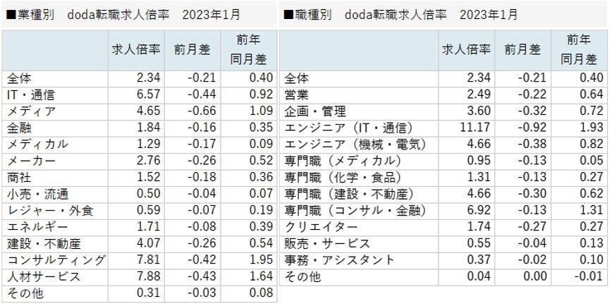 パーソルキャリア株式会社が運営する転職サービス「doda(デューダ)」(編集長:大浦 征也)は、2023年1月の転職求人倍率をまとめた「doda転職求人倍率」を発表いたします。