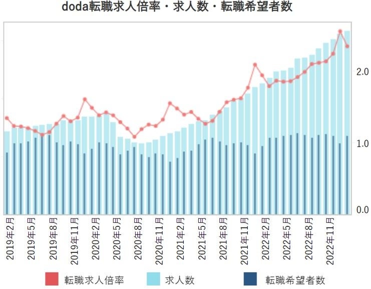 doda転職求人倍率 2023年1月は2.34倍(前月差-0.21ポイント)