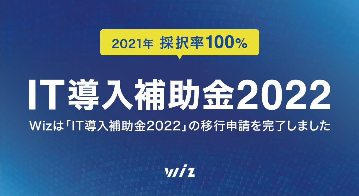【採択率100%の実績】Wizは、補助金額最大450万円、補助率最大3/4の「IT導入補助金2022」への移行申請を完了しました。