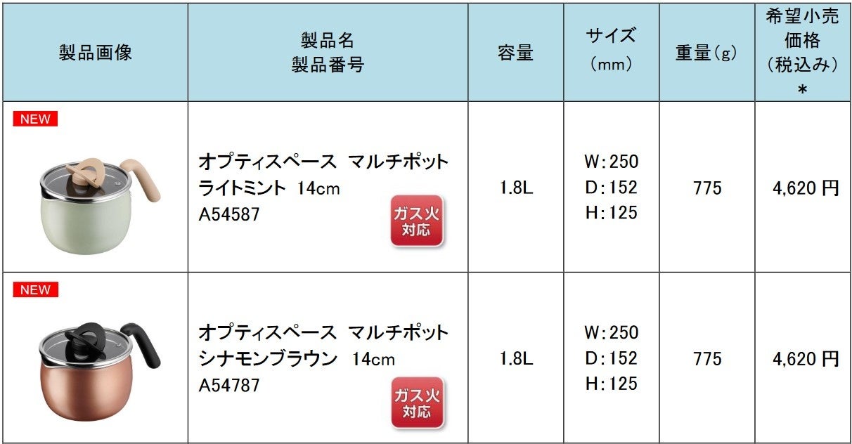 鍋ひとつで幅広い料理が作れるティファール「マルチポット」シリーズから、新たに「オプティスペース マルチポット 14cm」が登場! ガス火専用で、カラーはキッチンを華やかに演出するライトミント、どんなキッチンにも合う落ち着いたシナモンブラウンの2色から選べます。