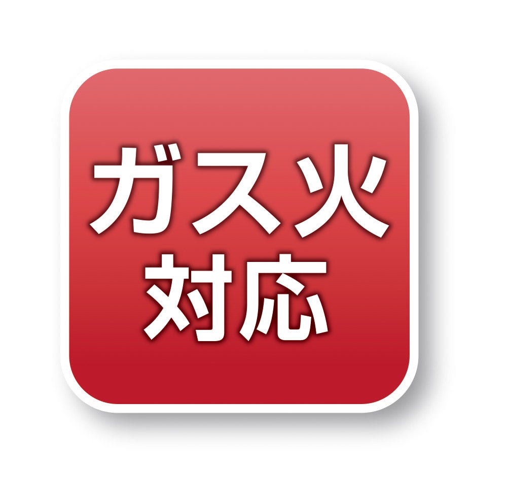 本体は軽く、熱伝導に優れたアルミニウムを採用し、中面にはガス火専用製品では最高級のチタン・インテンスコーティングが施され、使い始めのこびりつきにくさが長続きします。また、中面の中央にある赤い「お知らせマーク」が食材を入れるベストなタイミングを教えてくれるので、料理ビギナーの方でも失敗なく美味しい料理を作ることができます。