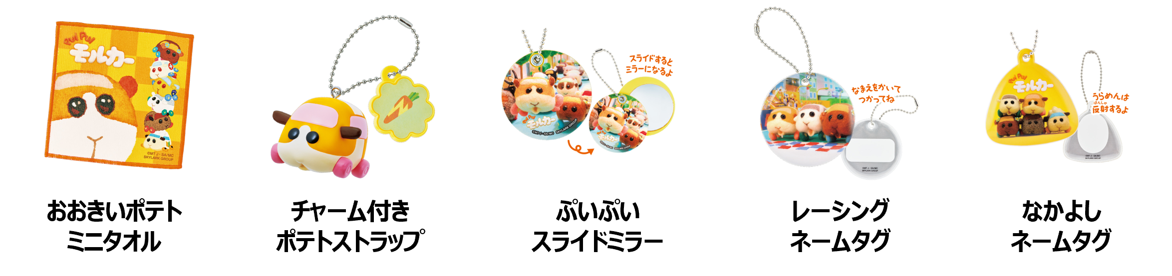 ポテトや仲間たちのストラップやネームタグなど、いつでも身に着けることができるアイテムが揃います。