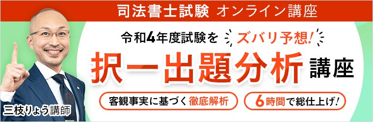 本講座は,令和4年度司法書士試験を受験される方を対象に,本試験において出題可能性の高い論点をピックアップし,三枝りょう講師が6時間で予想と解説を行う講座です。