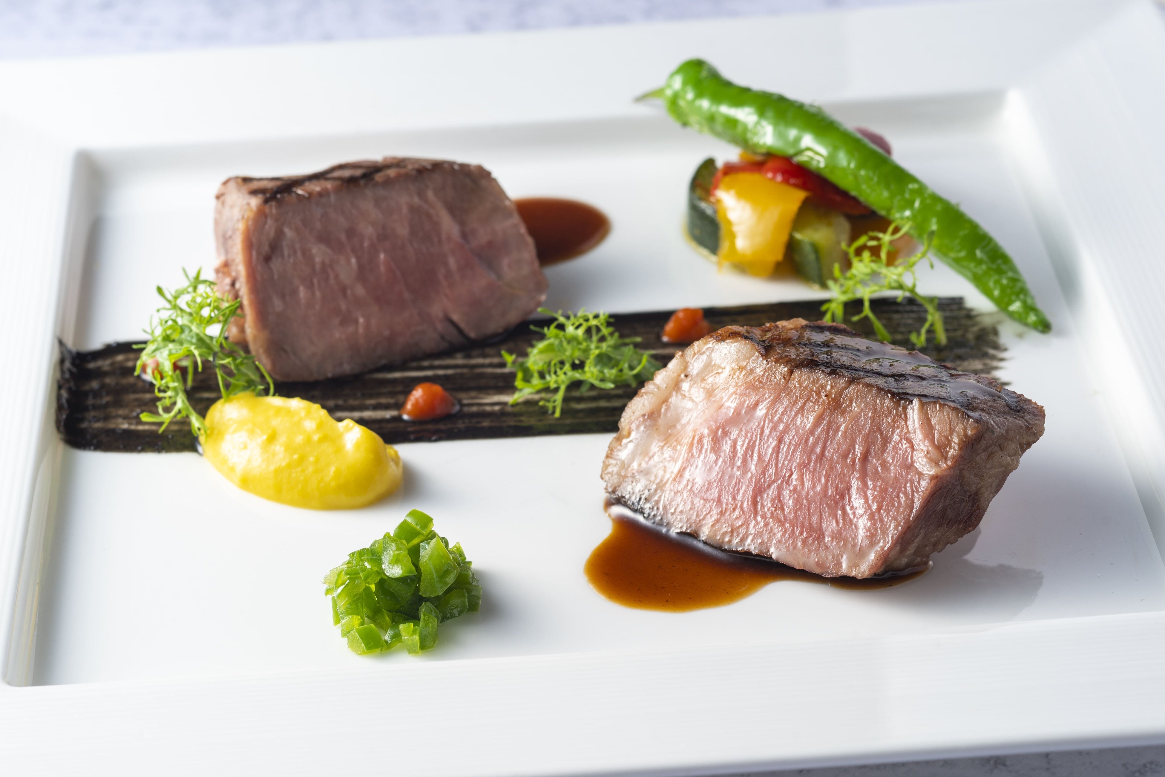 京都の夏を代表する食材やオマール海老を愉しめるフルコース。メインは黒毛和牛フィレ肉をご用意します。