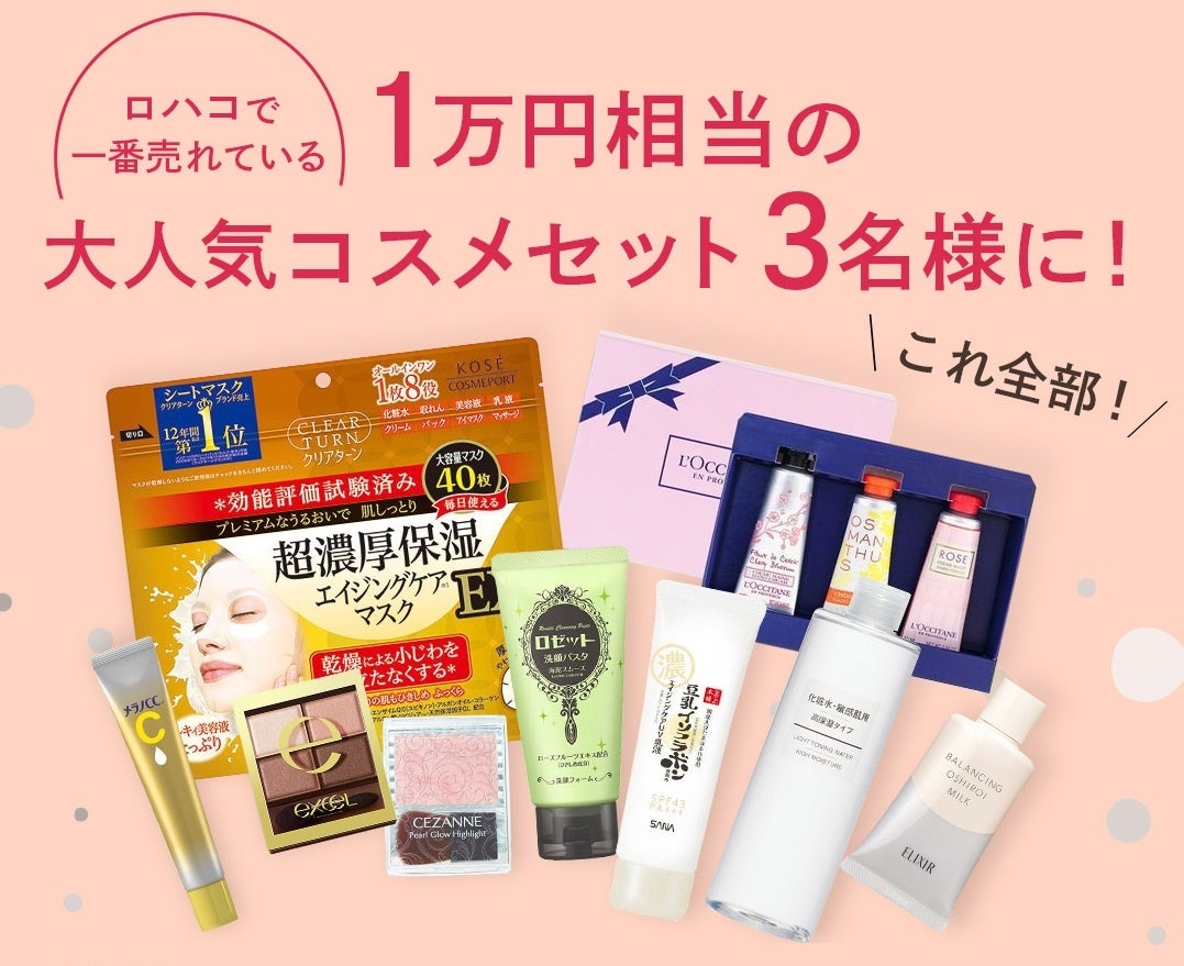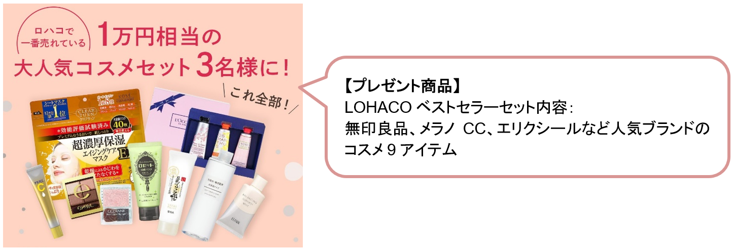 コスメデイズ開催に先駆け、LOHACO公式Instagram・Twitterでは、フォロワーにプレゼント対象となるセット商品の人気投票を実施。今回、投票で人気の高かったLOHACOのコスメ・スキンケアカテゴリ売れ筋ランキング上位商品「LOHACOベストセラーセット」を、9月7日18時までのLOHACO公式Instagram・Twitterプレゼントキャンペーンでご応募いただいた中から、Instagram・Twitterで各3名様にプレゼントします。LOHACO公式Instagram・Twitterのフォローが必須となりますので、どうぞお見逃しなく!