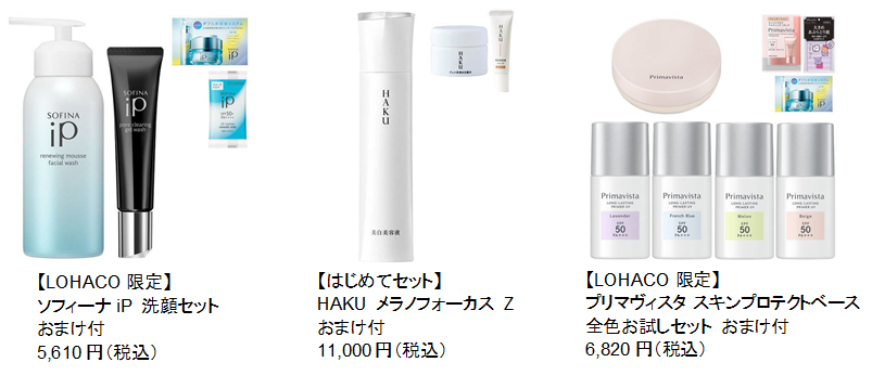 LOHACOでしか手に入らない限定セットや人気のコスメブランドのラインナップセット、はじめての方向けセットなどの限定セット(※2)をご用意しました。数量限定になりますので、お早めにチェックしてみてください。