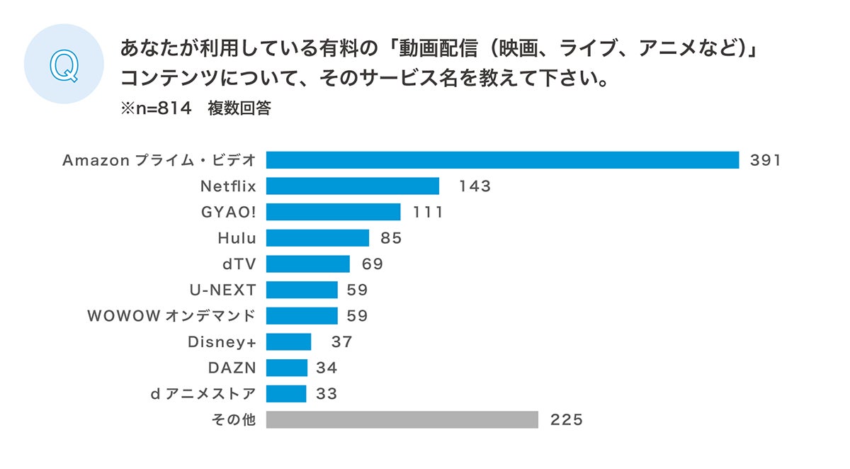 3.動画配信サービスの中では「Amazonプライム・ビデオ」が堂々の1位、続くのは「Netflix」