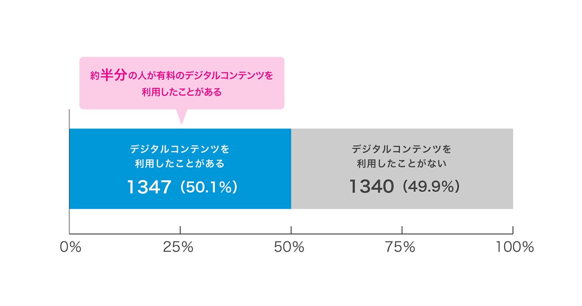 1.有料のデジタルコンテンツを利用したことがある人は約50%