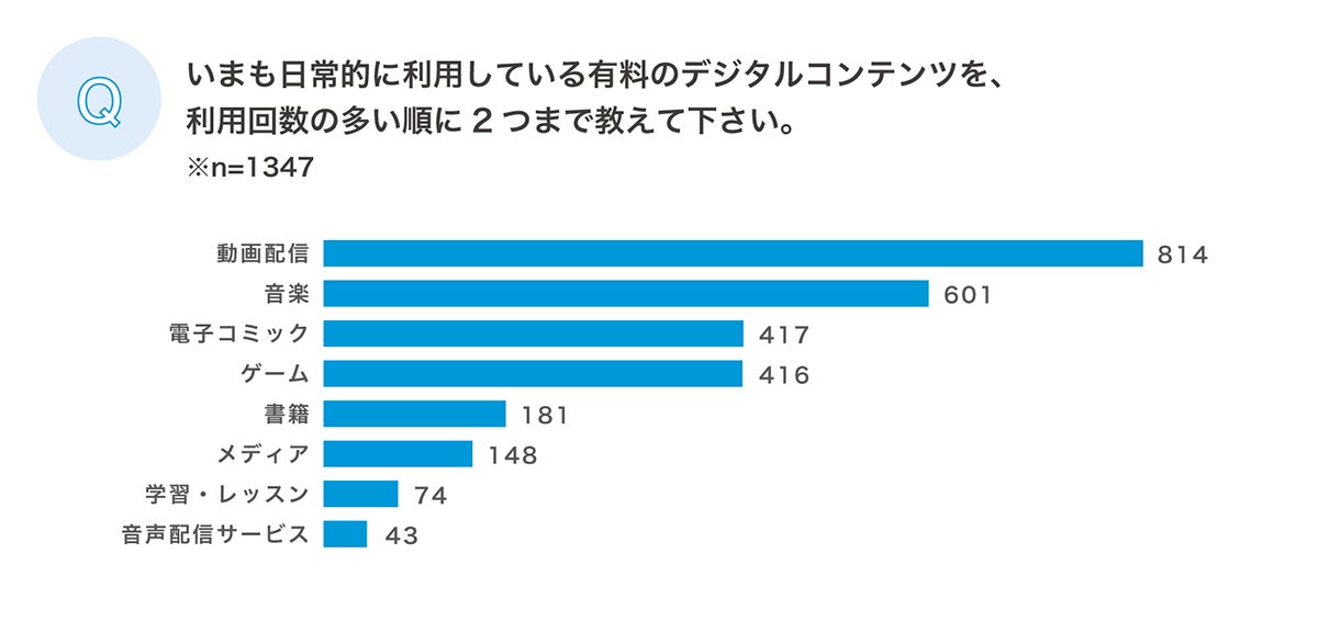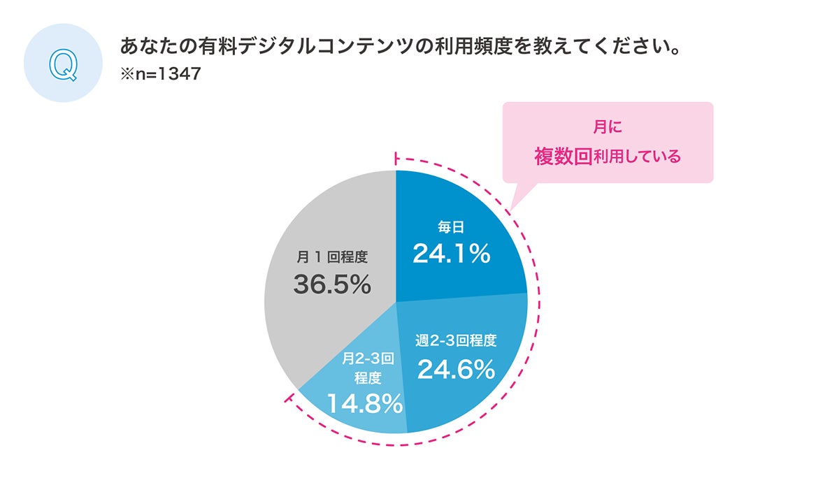 有料デジタルコンテンツを月に複数回、利用している人は約64%、その中で毎日利用している人は約24%いるようです。