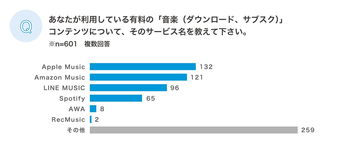 4.音楽配信では、サブスクの代表的なサービスが上位に並ぶ