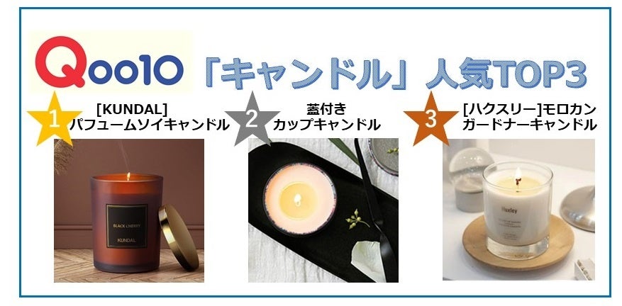 インターネット総合ショッピングモール「Qoo10」を運営するeBay Japan合同会社(本社:東京都港区、代表取締役:グ ジャヒョン)は、眺めているだけでも心が落ち着きインテリアとしても味わい深い「キャンドル」の販売数ランキングTOP3 ※1を発表します。また、アンティーク感を楽しめ安らぎの空間作りにもおすすめの「#レトロインテリア」も合わせてご紹介します。