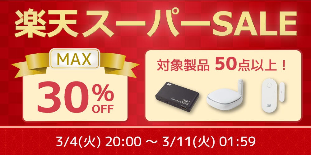 30%OFF対象の「開閉センサー」をはじめ、ゲーム用途に好評な「HDMI音声分離器」など、人気製品を多数ラインナップ。この機会にぜひお買い求めください。