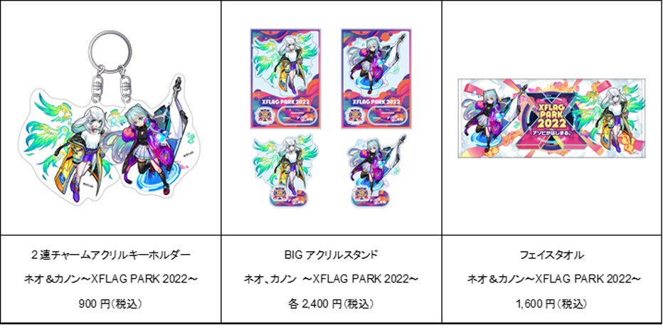 会場内のフラパ商店にて、「XFLAG PARK 2022」限定販売のグッズが各種登場します。「XFLAG PARK 2022」限定で描き下ろした「ネオ」「カノン」のイラストを使用したグッズを販売します。その他、ライフスタイルブランド「OUTDOOR PRODUCTS」とのコラボグッズも登場します。