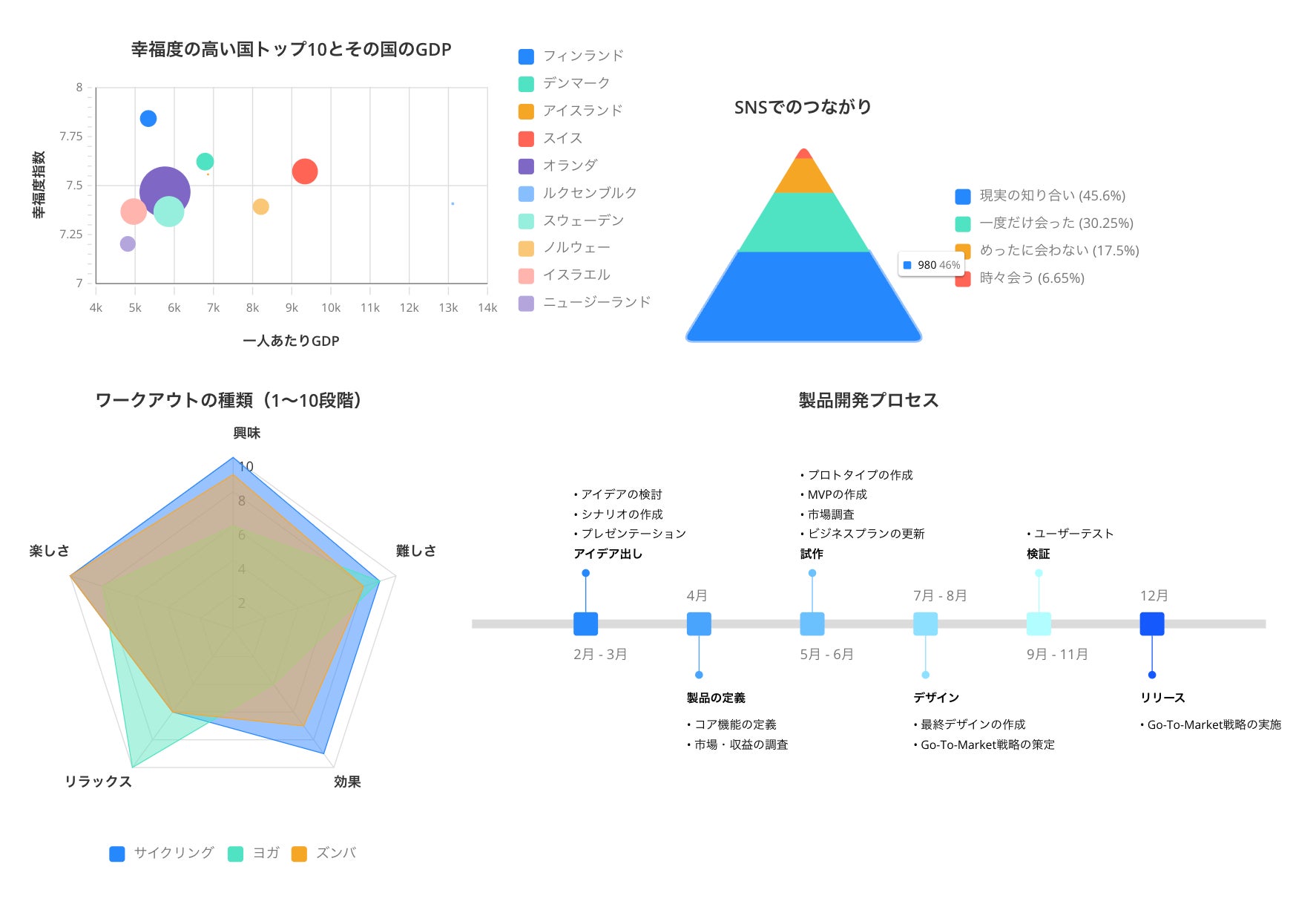今回のリリースにより、より多様なデータ表現が可能になり、社内報告資料や営業提案資料等への利用用途が広がります。