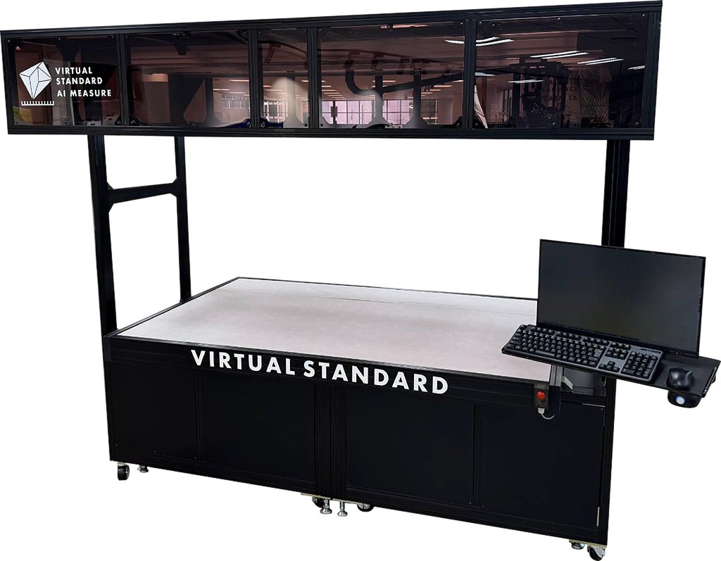 2024年7月、画像解析AIを活用したアパレル製品の採寸作業を自動化する装置「VIRTUAL STANDARD AI MEASURE」を発表しましたが、この度、長袖アイテムやビッグサイズアイテムの採寸機能、製品重量測定機能の追加や、操作システムがウェブ化された第2号機を開発しました。