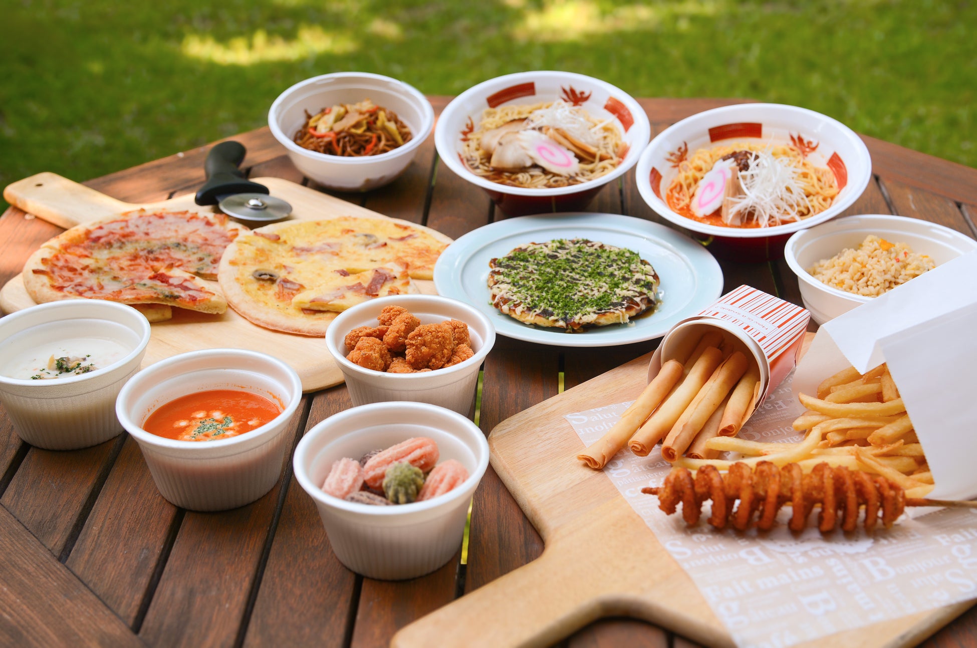 ラーメン、焼きそば、ピザ
