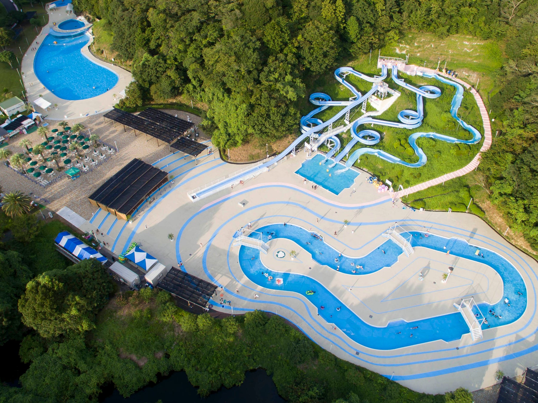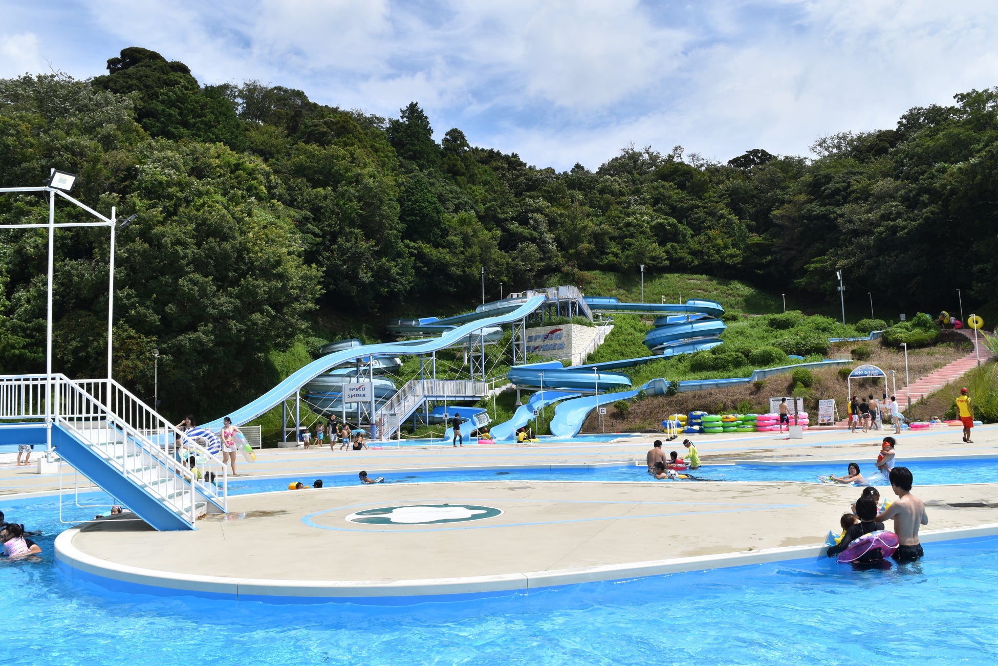 流れるプールやスライダー、人気の飛び込みプールやお子様専用プールもあります。