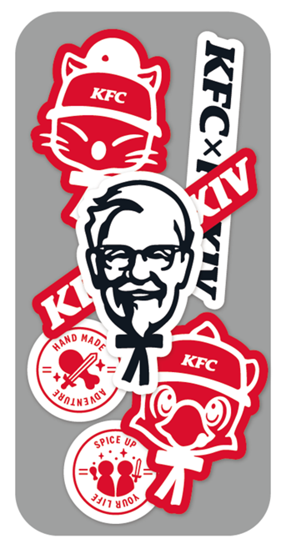 KFCでは、今回のコラボを記念した「ファイナルファンタジー14コラボセット」を数量限定で発売いたします。KFCの人気メニューを詰め込んだ専用BOXには、KFCスタッフに扮するFFの人気キャラクター「チョコボ」と「モーグリ」がカーネル・サンダースと共にデザインされています。さらに、同じく3キャラクターが並んだオリジナルのコラボステッカーも数量限定でプレゼントいたします。